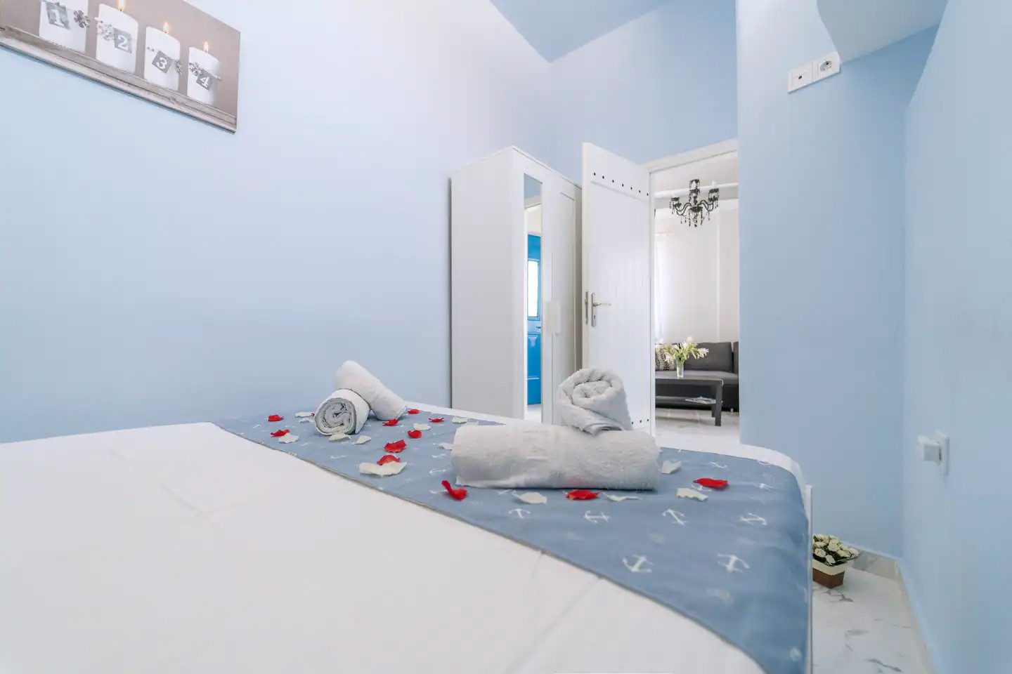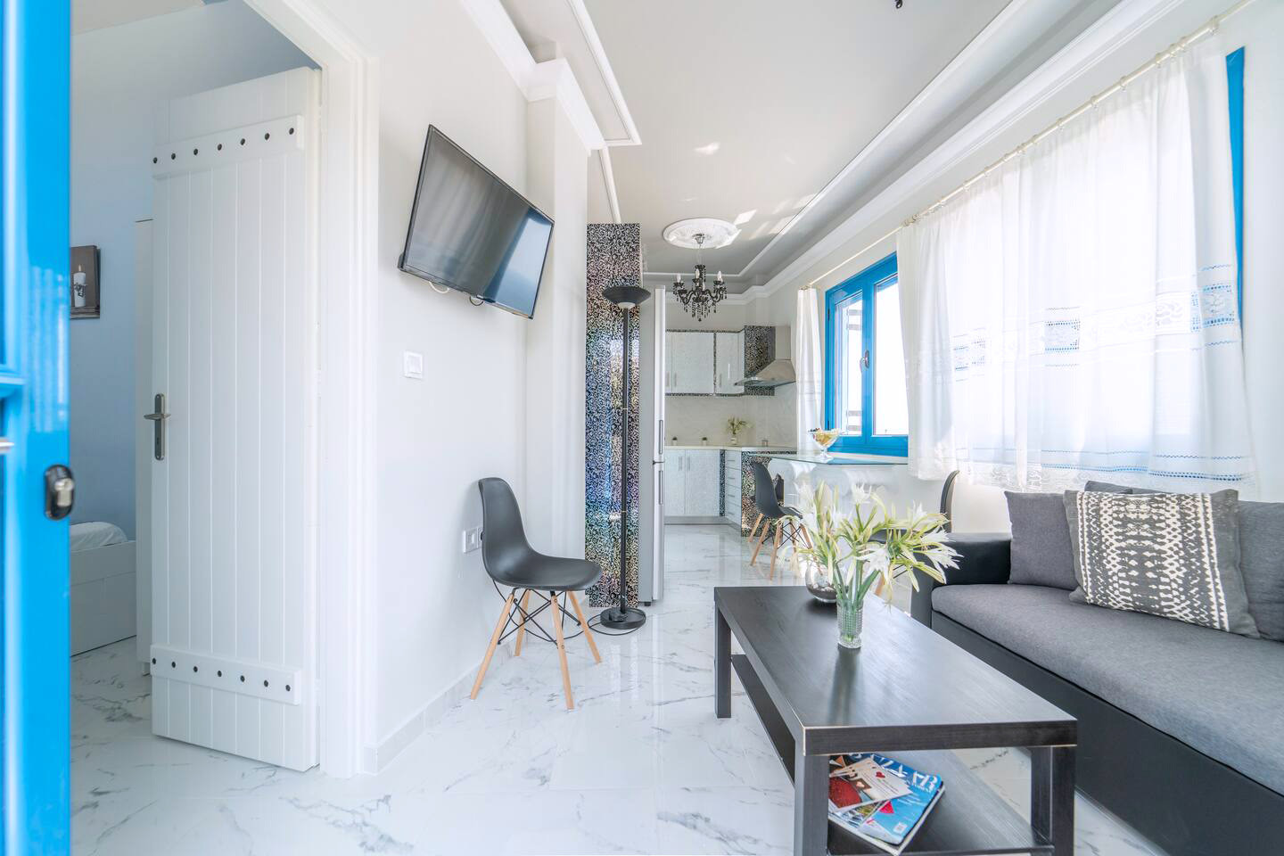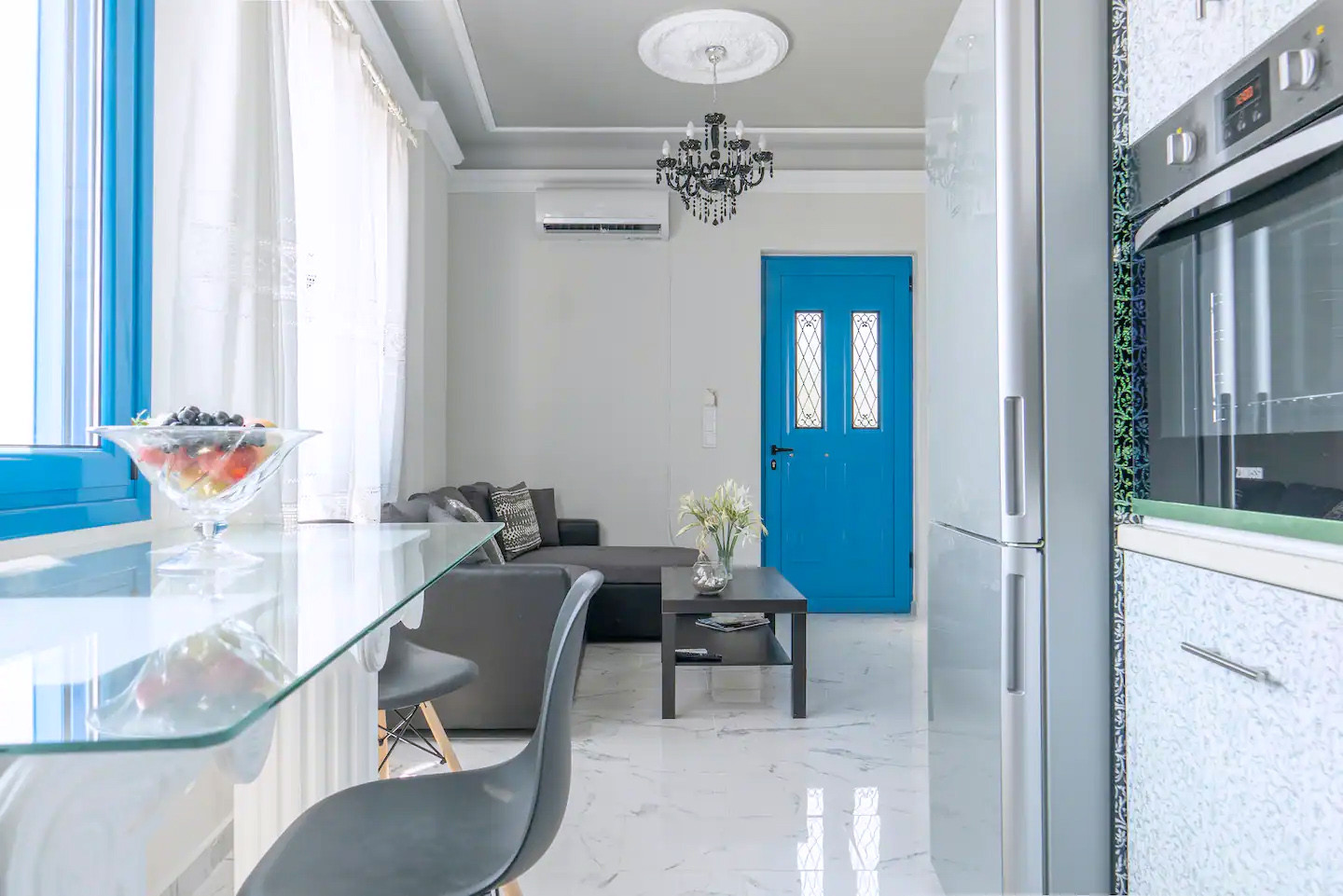 If you want to experience the ultimate relaxation, the Deluxe Suite is exactly what you are looking for. Its calming hues of blue along with the tasteful furniture create a relaxing ambiance that will help you recharge your batteries. Spend some time chitchatting in the comfortable living room and indulge in a homemade meal that you have prepared yourselves in the spacious kitchen.