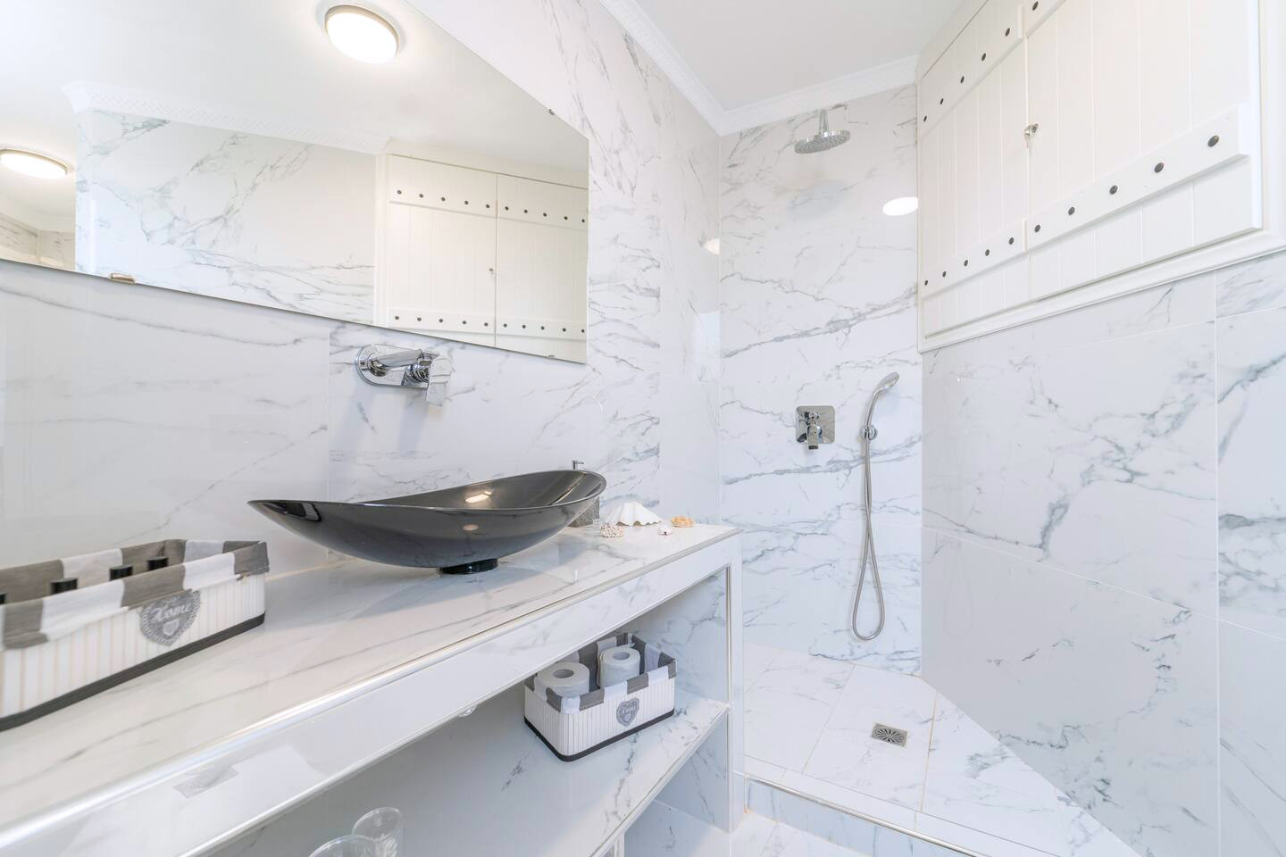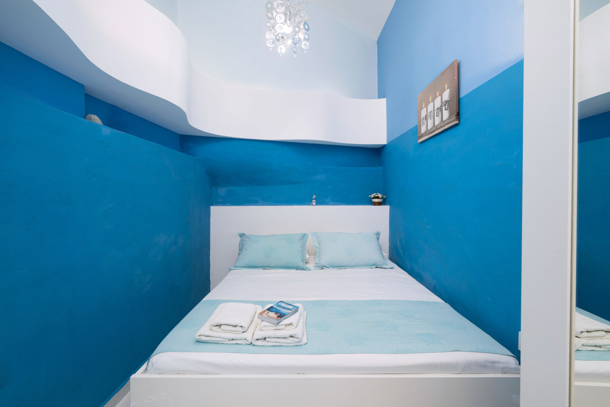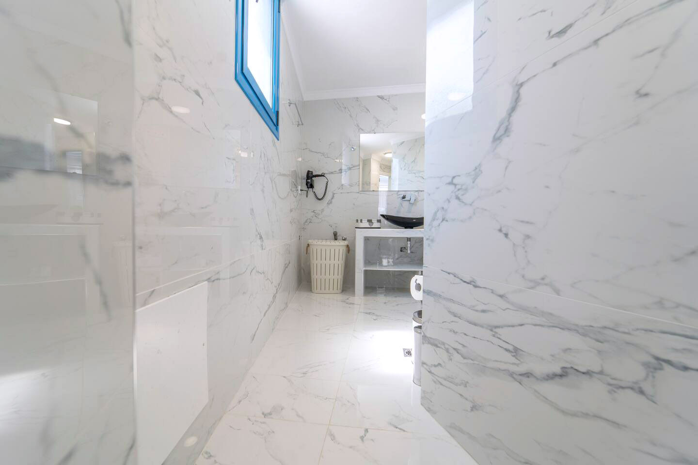 If you want to experience the ultimate relaxation, the Deluxe Suite is exactly what you are looking for. Its calming hues of blue along with the tasteful furniture create a relaxing ambiance that will help you recharge your batteries. Spend some time chitchatting in the comfortable living room and indulge in a homemade meal that you have prepared yourselves in the spacious kitchen.