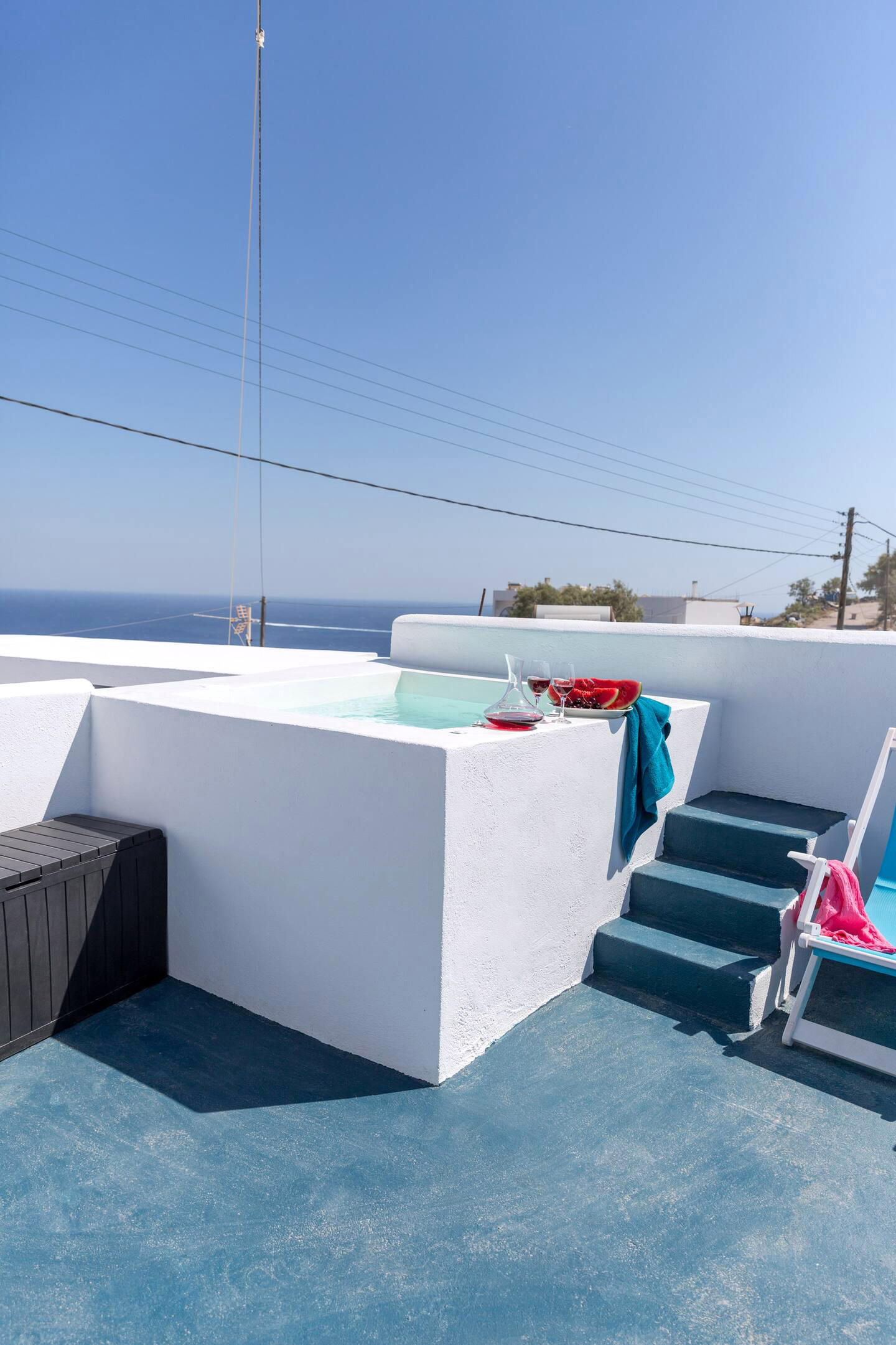 Soak in your own private outdoor jetted tub and take in an astounding view to the sapphire water of the sea. Lie on the sun loungers, benefit from the therapeutic effect of the Mediterranean sun and get the perfect suntan.